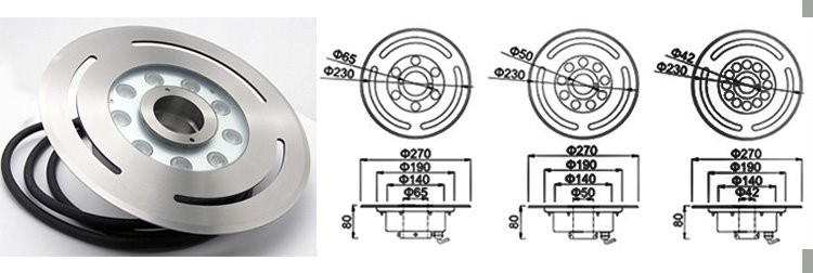 2.Il-funzjoni tad-dawl. Il-funzjoni tad-dawl tirreferi għall-luminożità luminuża tas-sors tad-dawl. Skont il-luminożità tal-illuminazzjoni u ż-żona tal-projezzjoni, jistgħu jintgħażlu speċifikazzjonijiet u mudelli differenti ta 'fanali taħt l-ilma u kwantitajiet. Il-fanali tal-funtana tal-mużika għandhom qawwa ta '9W/12W/24/36W. Hemm żewġ tipi ta 'kuluri: dawl monokromu u kontroll tad-dawl DMX.